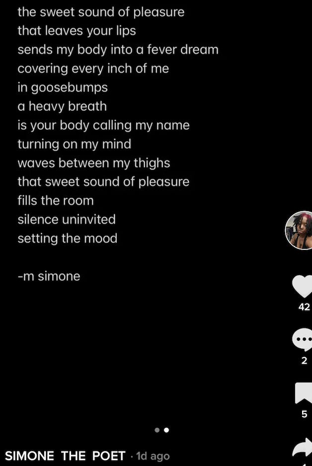 Thank you for reading. If you enjoy, consider becoming a paid subscriber to support me and have access to more creative original work and (coming soon…hopefully) long form writing. Special thank you and good things your way to those of you who are paid subscribers. Paid or free, I appreciate your presence.